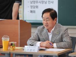 이날 정담회에는 주광덕 남양주시장을 비롯해 진건중학교장, 교직원과 학부모 20여 명이 참석해 △학교 계단 노후 창틀 교체 △학교 급식실 신설 △학교 주변 체육시설 이용 확대 등 교육 환경을 개선하기 위한 논의를 했다.