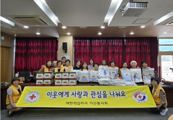 이날 가산적십자 봉사회 회원들은 간편 삼계탕, 죽 등 다양한 음식으로 구성된 보양식 꾸러미와 이불을 결연, 비결연, 취약계층 등 어려운 이웃 18가구에 전달했다.