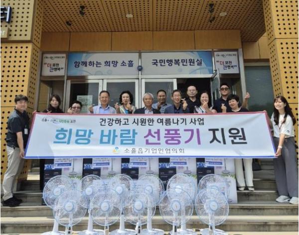 [한국뉴스타임=편집국] 소흘읍 행정복지센터는 지난 13일 소흘읍 기업인협의회와 협력해 취약계층 이웃 25가구를 대상으로 ‘희망의 바람 선풍기 지원’ 전달식을 개최했다.