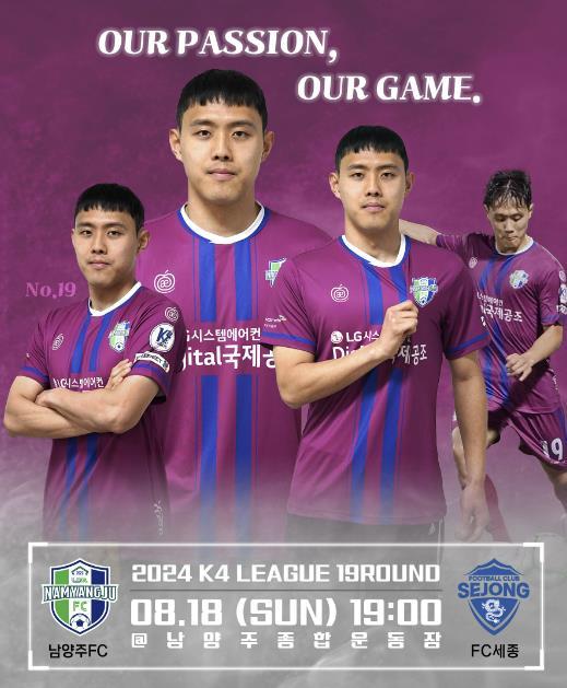 [한국뉴스타임=편집국] 남양주시민축구단이 오는 18일 오후 7시 남양주종합운동장에서 FC세종을 상대로 K4리그 19라운드 경기를 치른다.