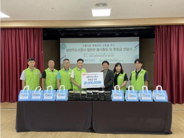 [한국뉴스타임=편집국] 남양주도시공사는 지난 13일 남양주시북부장애인복지관을 방문해 장애인을 위한 후원금을 전달하고 밑반찬 지원 봉사활동을 진행했다.