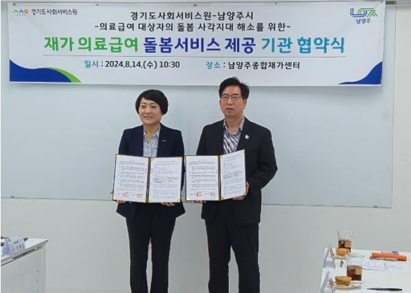 [한국뉴스타임=편집국] 남양주시는 14일 재가의료급여수급자의 돌봄사각지대 예방을 위해 경기도사회서비스원과 재가의료급여사업 돌봄서비스 제공 기관 협약을 체결했다.