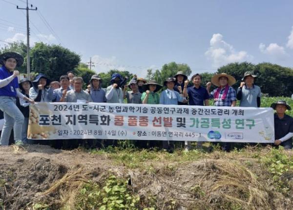 [한국뉴스타임=편집국] 포천시 농업기술센터는 지난 14일 이동면 연곡리 소재 논콩 시험포장 시설에서 ‘포천 지역특화 콩 품종 선발 및 가공 특성 연구’ 중간 평가회를 개최했다.