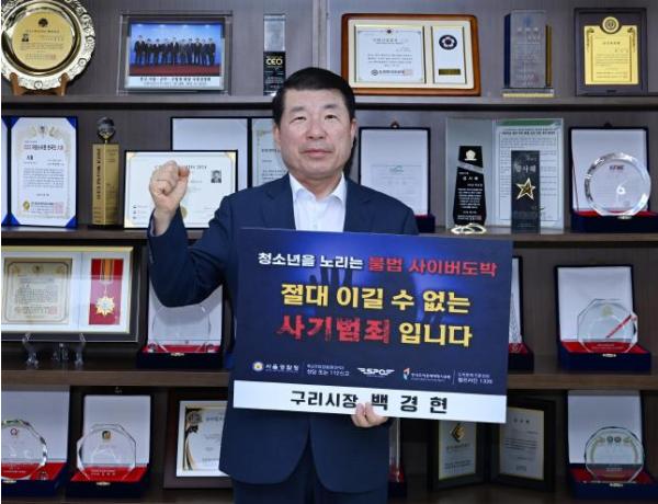 [한국뉴스타임=편집국] 백경현 구리시장은 8월 14일 ‘청소년 도박 근절 릴레이 챌린지’에 참여해 청소년을 대상으로 한 불법 사이버도박의 위험성을 알렸다.