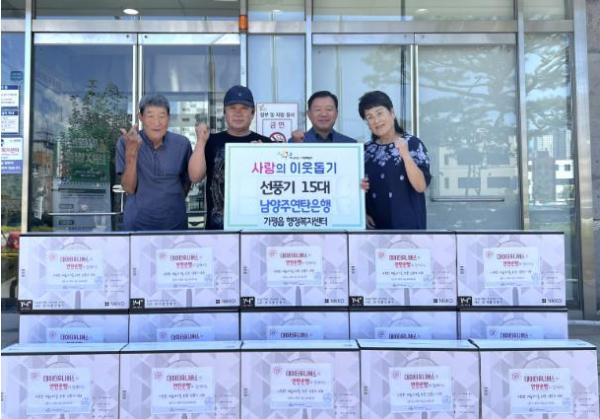 [한국뉴스타임=편집국] 남양주연탄은행은 19일 가평읍 행정복지센터를 방문해 선풍기 15대를 전달했다. 이번 성품은 지난 16일 에너지 취약계층을 지원하기 위해 ㈜데이터유니버스에서 밥상공동체 연탄은행에 후원한 선풍기로, 가평읍 취약계층에게 전달할 예정이다.