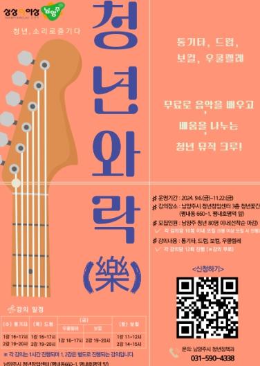 [한국뉴스타임=편집국] 남양주시는 오는 9월부터 11월까지 남양주시 청년창업센터에서 청년 음악스쿨 프로그램 ‘청년와락(樂)’을 운영한다고 21일 밝혔다.