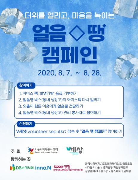 이번 얼음 땡 프로젝트는 운영기간이 지난 이후에도 각 지역과 단체들이 연결되어 늦더위까지 운영될 수 있도록 진행 되며, 이후에도 이웃을 함께 살피는 “사회적 고립 해결-이제는 외롭지 않아요! 캠페인”도 진행할 예정이다. 관련 정보는 자원봉사 온라인 V세상(volunteer.seoul.kr)에서 확인가능하며, 기타 문의는 담당자(02-2136-8735)로 하면 된다.