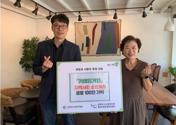 [한국뉴스타임=편집국] 남양주시 사회복지관 북부희망케어센터는 지난 2일 카페잉거13에서 부모 코칭 프로그램 ‘희망소리’ 참여자를 위한 음료 100잔(50만원 상당)을 후원했다고 전했다.