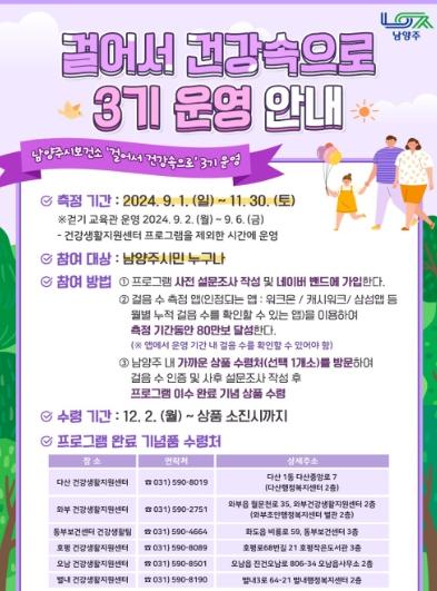 ‘걸어서 건강속으로’는 2024년 남양주시보건소 부서별 합동·운영 프로그램이다.