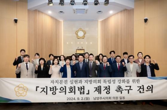 [한국뉴스타임=편집국] 남양주시의회는 지난 2일 제306회 임시회 제1차 본회의에서 자치분권 실현과 지방의회 독립성 강화를 위한‘지방의회법 제정 촉구 건의안’을 만장일치로 채택했다.