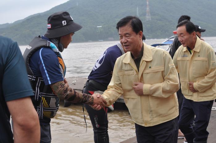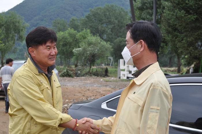 이어 소양강댐 방류로 침수되었던 자라섬을 찾아 수해복구 작업 하는 가평군 관계자와 직원들을 격려하고 침수재발 대책에 대하여 현장에 있던 경기도의회 김경호 도의원과 논의했다.