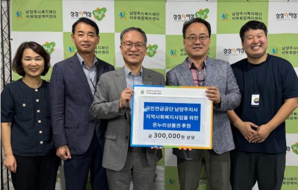 한편 국민연금공단 남양주지사는 매년 서부희망케어센터와 연계, 직원들이 모금한 후원금으로 마련한 온누리상품권을 기부하는 등 다양한 사회공헌활동을 이어가며 지역사회에 귀감이 되고 있다.