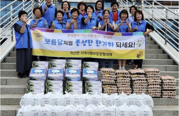 이날 가산면 지역사회보장협의체 위원들은 전, 나물, 물김치 등 직접 만든 명절 음식과 계란, 포도, 송편 등이 담긴 꾸러미를 준비해 관내 취약계층 50가구에 전달했다.