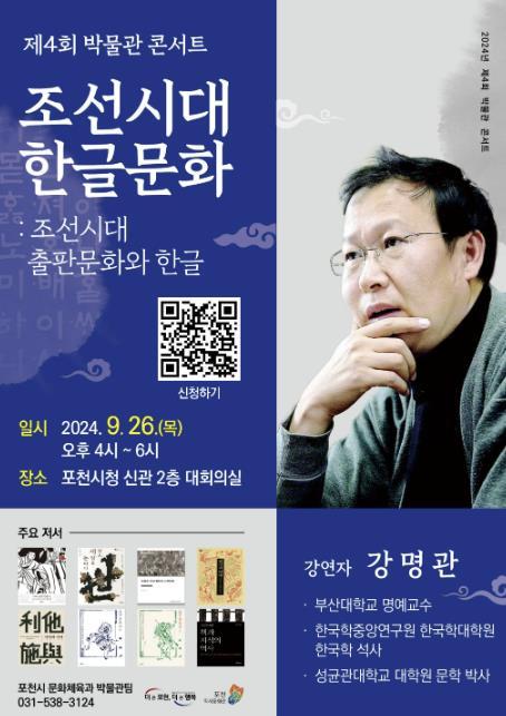 이번 박물관 콘서트는 강명관 교수를 강연자로 초청해 ‘조선시대 한글문화: 조선시대 출판문화와 한글’이라는 주제로 진행한다.