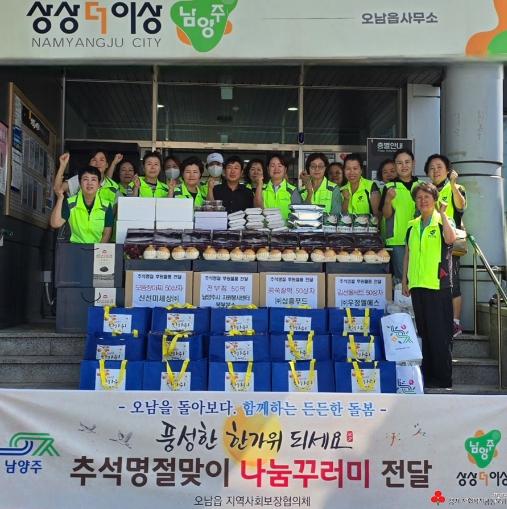 이석찬 오남읍장은 “매년 명절마다 취약계층을 위해 꾸준히 봉사해주시는 협의체 위원들과 관내 기업들이 나눔을 실천해주심에 감사의 마음을 전하며, 어려운 이웃이 소외되지 않고 풍성한 추석을 보낼 수 있기를 바란다”라고 전했다.