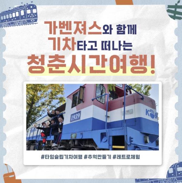 [한국뉴스타임=편집국] 가평군이 가평읍 음악역 1939 ‘경춘선 시간여행거리 열차’ 앞에서 9~10월 '기차타고 떠나는 청춘 시간여행' 프로그램을 운영한다.
