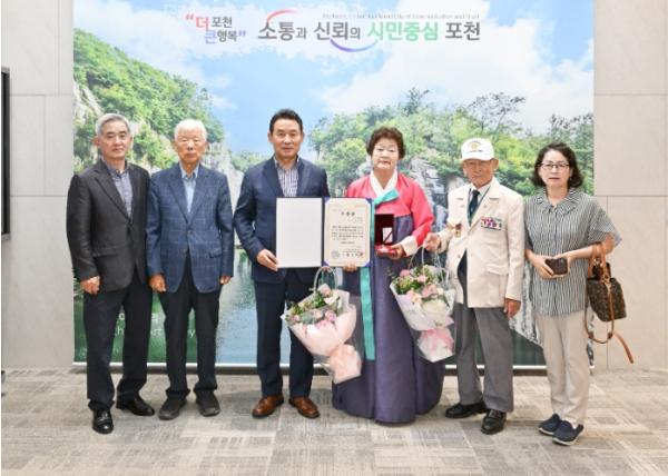 백영현 포천시장은 “오랜 세월이 지났음에도 유가족분들께 훈장을 전해드릴 수 있어 다행이다”라며, “6·25전쟁 참전 유공자분들의 고귀한 희생이 있었기에 오늘의 우리는 자유와 평화가 있는 조국 대한민국에 있을 수 있었다. 우리의 후손들이 여러분들의 희생을 잊지 않도록 보훈 문화 확산에 최선을 다하겠다”고 말했다.
