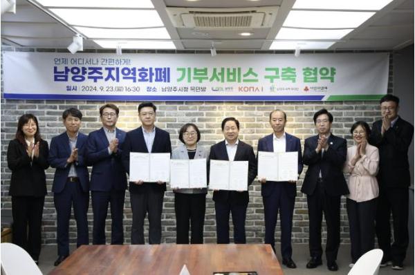 [한국뉴스타임=편집국] 남양주시는 지난 23일 지역사회 내 나눔문화 활성화를 위해 ‘언제, 어디서나 기부가 가능한 남양주사랑상품권(지역화페) 기부하기 기능구축’ 업무협약을 체결했다고 24일 밝혔다.