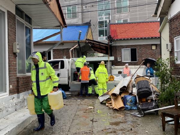 이에 자원봉사센터가 집중호우로 피해를 입은 주택침수가옥에 대한 복구활동에 나서며 고통을 반분했다.