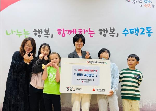 [한국뉴스타임=편집국] 구리시 수택2동행정복지센터는 7일 수택2동 좋은나무지역아동센터로부터 사랑의 후원금을 전달받았다.
