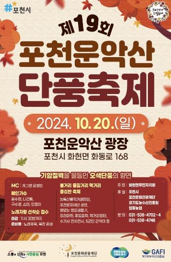 [한국뉴스타임=편집국] 포천시 화현면 행정복지센터와 화현면 주민자치회는 오는 20일 포천운악산 광장(화현면 화동로 168)에서 ‘제19회 포천운악산 단풍축제’를 개최한다.