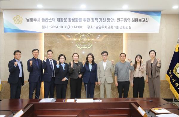 [한국뉴스타임=편집국] 남양주시의회 의원연구단체‘남양주시 플라스틱 재활용 활성화를 위한 정책 개선방안’연구모임이 지난 8일 시의회 소회의실에서 연구용역 최종보고회를 개최했다.