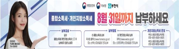 [KNT한국뉴스타임] 부천시는 종합소득세와 개인지방소득세의 납부기한이 도래함에 따라 미납 납세자에게 이달 말까지 납부해 줄 것을 당부하며 홍보에 나섰다.