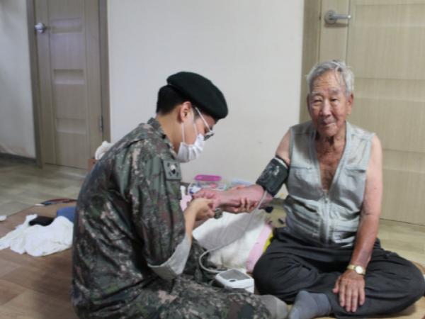 또한, 사단 주임원사단은 거동이 불편하신 참전용사의 집에 혹시나 호우로 인해 주택이 피해를 입어 위험한 상황이 발생하지 않을까 걱정하며 주택 곳곳을 면밀히 점검하였고, 군의관은 폭우속에 참전용사의 건강을 자세히 검진하였다.