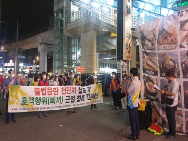 (사)한국유흥음식업중앙회 의정부·양주시지부(지부장 임문수)는 8월 11일 신시가지 일원에서 불법행위근절을 위한 거리캠페인을 진행했다.
