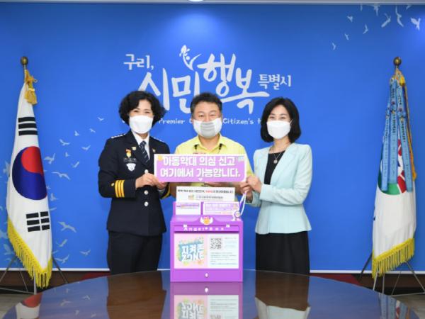 구리시(시장 안승남)는 11일 구리경찰서(서장 유희정), (사)한국폭력학대예방협회(회장 신의진)와 함께 3층 민원상담실에서 국내에서는 최초로 아동학대 신고함 ‘지켜ZONE’ 설치 전달식을 실시했다.