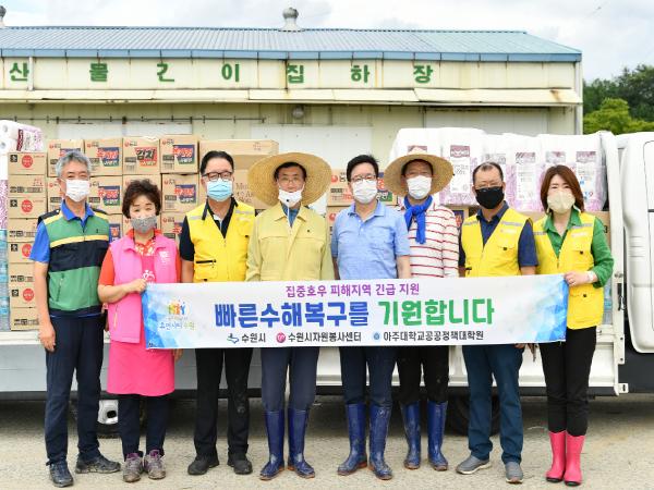 한편 수원시와 수원시자원봉사센터는 지난 7일에는 집중호우로 피해를 본 충남 천안·아산시, 예산군에 7일 장화 300켤레, 생수 2000통 등 수해복구 물품을 긴급 지원하고, 9일에는 수해 지역인 전남 구례군, 화순군에 생수, 라면, 즉석밥, 치약·칫솔 등 구호물품을 지원한 바 있다.