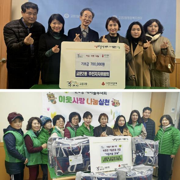 [한국뉴스타임=편집국] 구리시 교문2동행정복지센터는 교문2동주민자치위원회 및 새마을부녀회 주관으로 지난 10일 이불 20개를 기부하는 ‘이웃나눔 실천 사업 전달식’을 가졌다고 밝혔다.