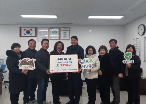 [한국뉴스타임=편집국] 남양주시 수동면 소재 ㈜원일산업은 18일 지역 내 어려운 이웃을 위한 후원금 500만원을 경기사회복지공동모금회를 통해 수동면 지역사회보장협의체에 지정 기탁했다.