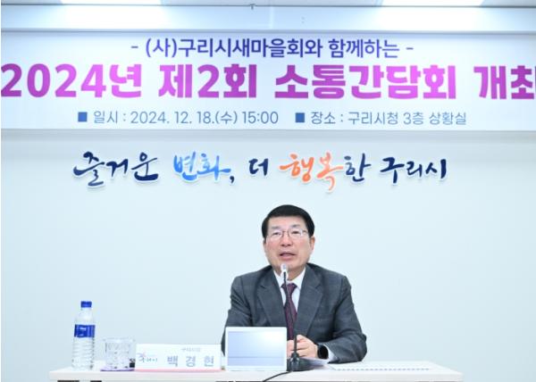 백경현 구리시장은 “이번 소통간담회는 지역사회의 다양한 목소리를 듣고 함께 협력할 방안을 모색할 수 있는 뜻깊은 시간이었다.”라며, “앞으로도 시민들과의 소통을 강화하며 모두가 행복한 도시를 만드는 데 최선을 다하겠다.”라고 전했다.