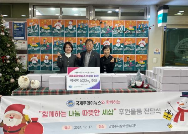 [한국뉴스타임=편집국] 국제투데이뉴스는 지난 17일 남양주시장애인복지관에 떡국떡 500kg을 전달했다.