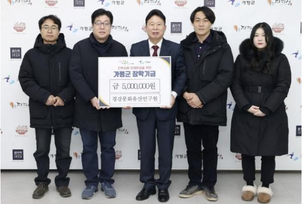 경강문화유산연구원은 19일 가평군청을 방문해 지역인재 육성을 위한 장학금 500만 원을 기부했다. 이날 경강문화유산연구원 차우근 대표는 “학생들이 학업에 전념하며 우수한 지역인재로 성장하는 데 작은 도움이 되길 바란다”며 장학금을 전달했다.