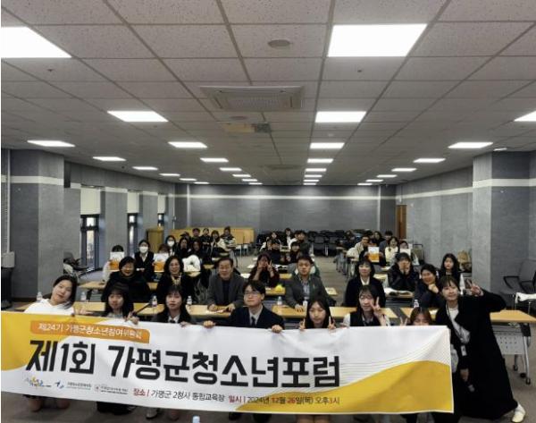 [한국뉴스타임=편집국] 가평군은 최근 가평군청 제2청사에서 ‘2024년 청소년 포럼’을 개최했다고 밝혔다. 이번 행사는 가평청소년문화의집이 주관했으며, 지역 청소년들이 사회적 문제에 대한 의견을 나누는 소통의 장으로 마련됐다.