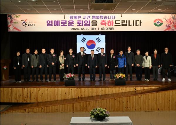 [한국뉴스타임=편집국] 구리시는 2024년 12월 30일 시청 대강당에서 구리시를 위해 헌신적으로 근무하고 퇴임하는 직원 7명에 대한 정년 퇴임식을 개최했다.