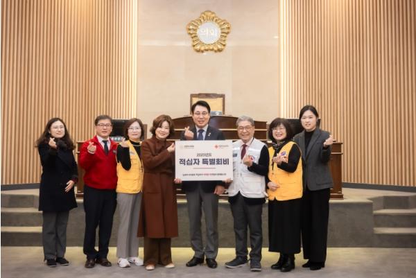 [한국뉴스타임=편집국] 남양주시의회는 지난 30일 본회의장에서 대한적십자사 경기도지사에‘2025년도 적십자 특별회비’를 전달하며 연말을 맞아 지역의 어려운 이웃들을 위한 나눔에 동참했다.