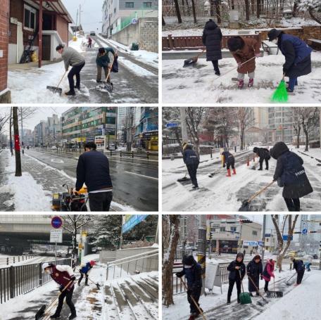 이른 새벽부터 주요 이면도로 등에 밤을 새워 제설제 10톤을 살포했으나 약 5cm에 이른 폭설로 인해 이면도로와 인도 등에 눈이 점차 쌓이자, 봉사단원들은 주요 도로 뿐만 아니라 초등학교 통학로와 역사 주변 등 주요 구역을 꼼꼼히 제설에 나서며 빙판길 낙상사고 예방을 위해 구슬땀을 흘렸다.