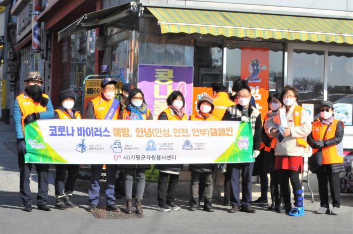 이날 캠페인에는 영하의 날씨에도 불구하고 한국자유총연맹 가평군지부 박경수 회장 및 회원 20여명과 가평군자원봉사센터 하재선 사무국장 및 직원들이 참여하였으며, 지역주민과 방문객들을 대상으로 예방마스크와 전단지를 배포하며 '코로나 바이러스' 확산방지 예방 정보전달을 하였다.
