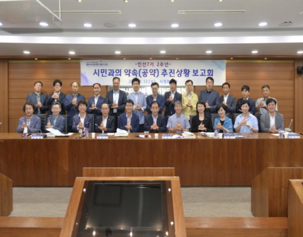 이날 보고회에는 공약추진평가단이 참석한 가운데 국?소장의 추진상황 보고를 시작으로 공약추진평가단의 정책 제안과 시민과의 약속인 공약의 이행도를 높이기 위한 방안을 논의하는 시간을 가졌다.