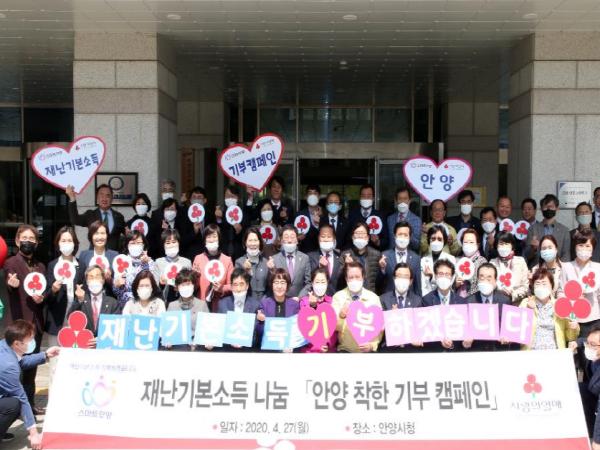 안양착한기부는 코로나19 장기화로 어려움에 처한 지역주민과 소상공인들을 돕고자 재난지원금을 자율적으로 모금하는 캠페인이다. 시는 시청사 1층 로비에 기부와 함께 기념촬영을 할 수 있는 포토존도 설치했다.