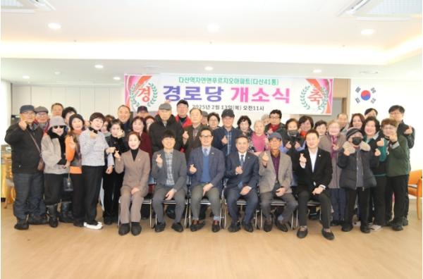 이날 개소식에는 이진환 운영위원장, 정현미 시의원, 원주영 시의원, 이기복 다산행정복지센터장을 비롯해 류건민 대한노인회 다산1동 노인회 분회장과 41통 경로당 어르신 등 50여 명이 참석해 경로당 개소를 축하했다.