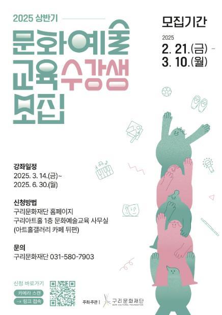 (재)구리문화재단은 2025년 상반기 문화예술교육 강좌를 개강하고, 유아부터 성인까지 전 연령층을 대상으로 다양한 프로그램을 운영한다.