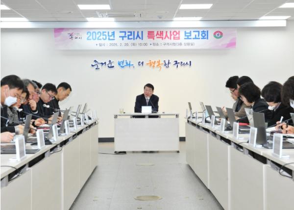 [한국뉴스타임=편집국] 구리시는 20일 3층 상황실에서 시민들이 함께 공감하고 체감할 수 있는 행복시정 구현을 위한‘2025년 특색사업 보고회’를 개최했다.