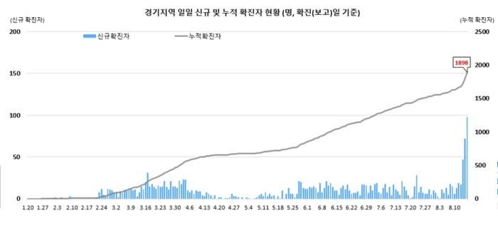 한편 경기도는 지역 확진자가 96명으로 서울시 사랑제일교회 관련 해서 가평 4명을 포함하여 인천, 고양, 동두천, 평택 등에서 지역감염 확진자가 발생하였으며, 방역당국은 “더 늘어 날것” 라고 밝혔다.
