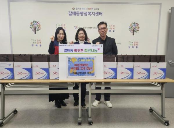 [한국뉴스타임=편집국] 구리시 갈매동행정복지센터는 지난 2월 28일 ㈜케이메나콘텐츠(대표 성일광)으로부터 600만원 상당의 바이오원적외선 허리벨트 20세트를 후원받았다고 밝혔다.