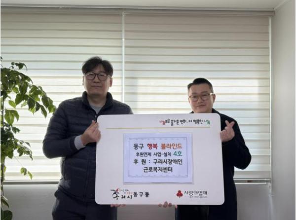 '동구 행복 블라인드 사업'은 동구동행정복지센터가 구리시장애인근로복지센터(센터장 오원우)의 업무 협약을 통해 저소득 가구의 주거환경 개선을 위하여 센터 관계자들의 재능기부로 추진하는 후원 연계 사업이다.