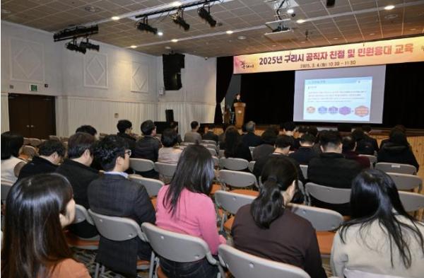[한국뉴스타임=편집국] 구리시는 지난 4일 시민들에게 최고의 행정서비스를 제공하기 위해 전 직원 대상‘고객 감동 친절 및 민원 응대 교육'을 실시했다.